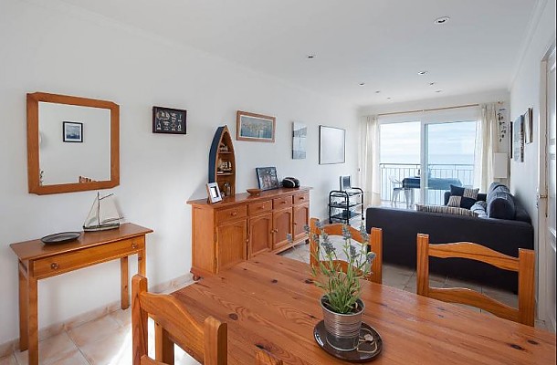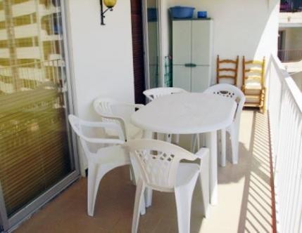 Bonito apartamento de alquiler en Costa Brava con una amplia terraza y vistas hacia la playa. Dos habitaciones una de ellas con una cama de matrimonio, la otra con dos camas individuales. Amplio comedor...
