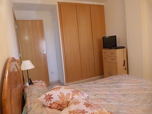 Apartamento de alquiler en Costa Brava, Roses. El alojamiento dispone de dos dormitorios, uno con cama matrimonio y otro con una litera. Salón con sofá cama doble, cocina bien equipada, baño con bañera...