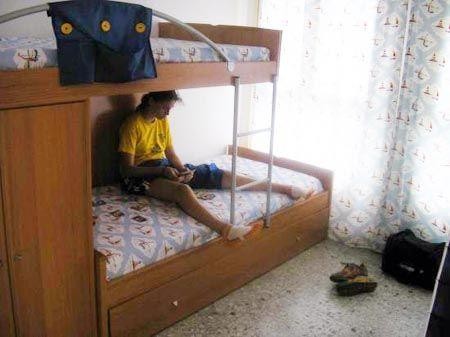 Alojamiento vacacional en la Costa Brava para sus vacaciones. El apartamento de alquiler ofrece una habitación con cama de matrimonio con una mampara de vidrio corredera que la separa de una cama nido...
